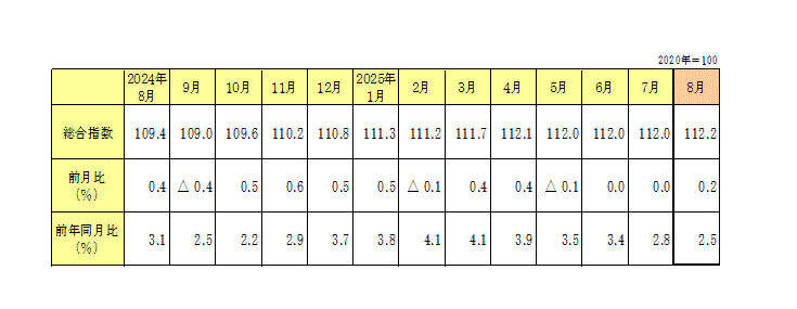 EXCEL形式(令和7年8月分) | ![]() | cpi202508.xlsx[26KB] |