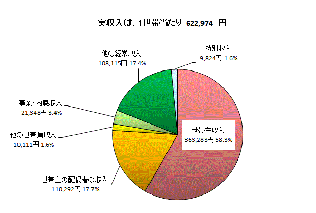 | 実収入 | 622,974 円 | 608,578 円 | ||
