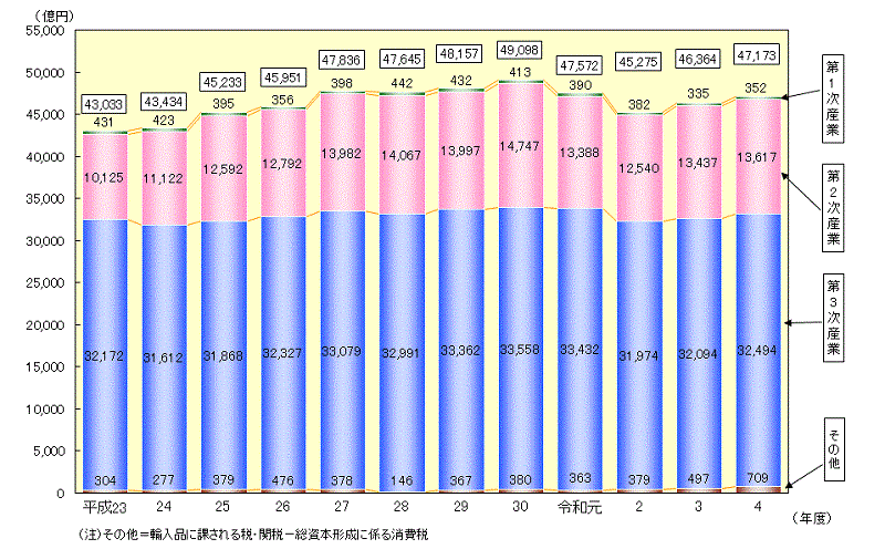 図4 県内総生産(生産側、名目)の推移 ![]() クリックすると拡大します |