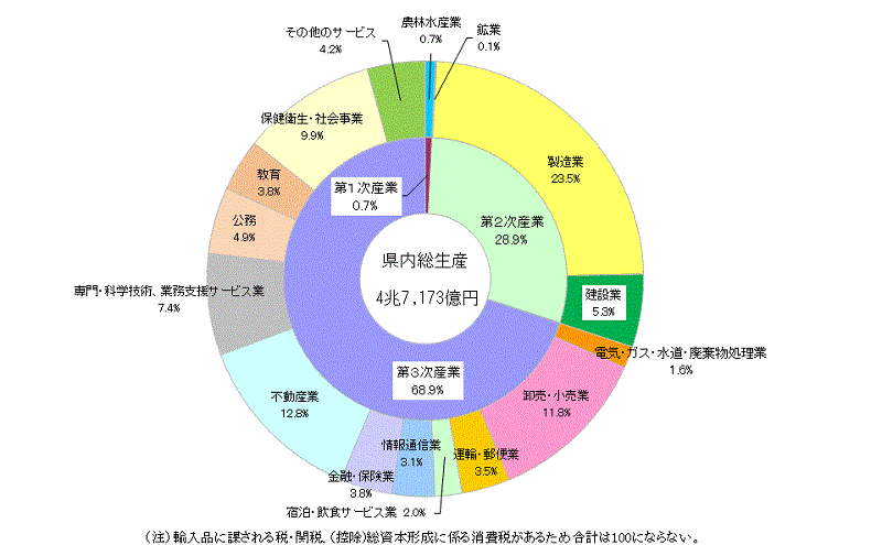 | 県(国)内総生産 | 名目 | 億円 | 46,364 | 47,173 | 5,536,423 | 5,664,897 |
