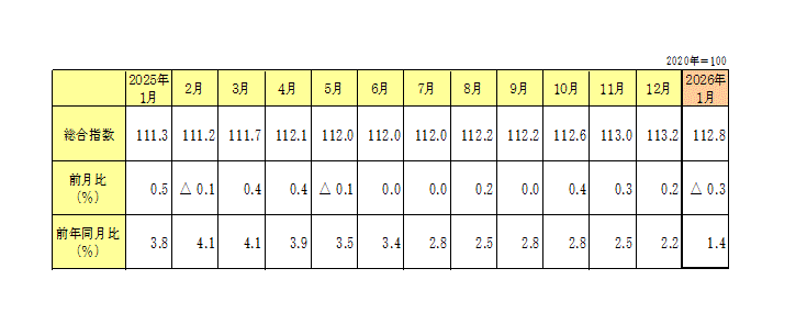 金沢市消費者物価指数(令和8年1月分)